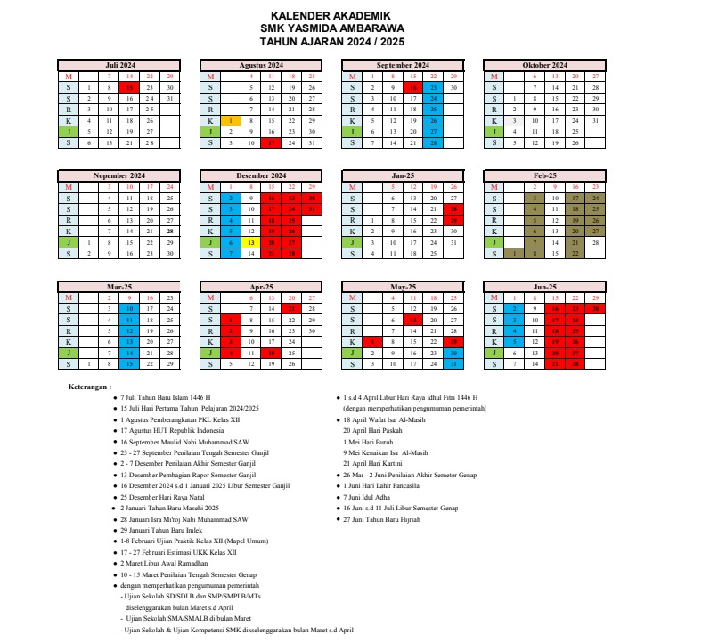 Kalender Pendidikan Tahun Pelajaran 2024/2025