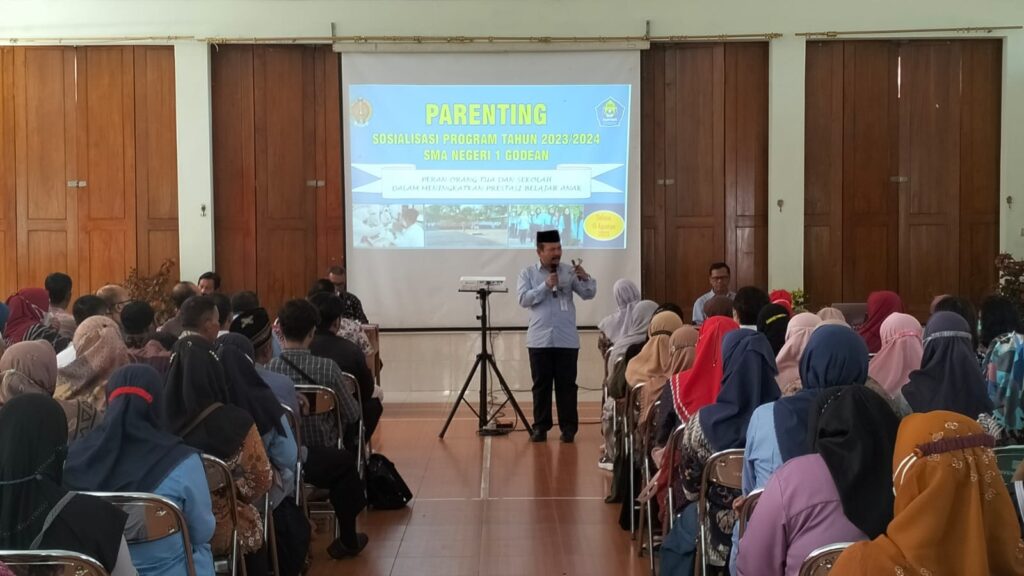 Untuk menyamakan persepsi dan meningkatkan sinergi antara sekolah dan orang tua siswa, SMAN 1 Godean melaksanakan Parenting bagi kelas X tahun 2023/2024. Parenting diikuti oleh orang tua siswa kelas X bersama dengan Komite Sekolah. Kegiatan yang berlangsung pada hari Selasa (15/8/2023) menghadirkan narasumber Agus Priyantoro, S.Pd, M.Pd. selaku Pengawas Manajerial dari Balai Pendidikan Kabupaten Sleman.